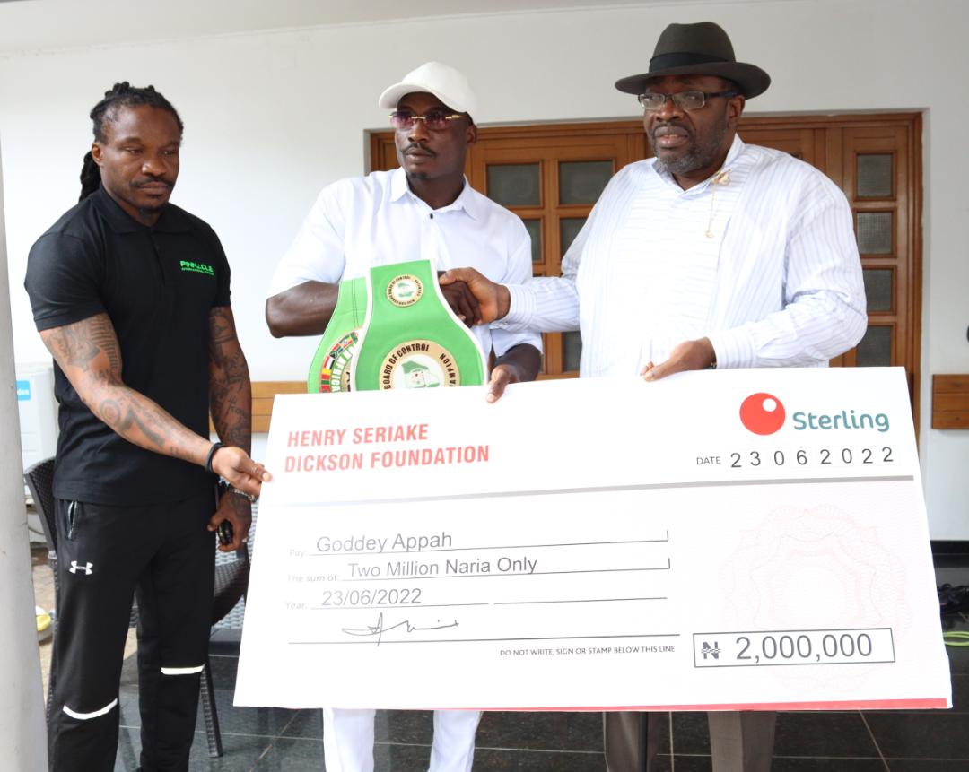 The Senator representing Bayelsa West in the National Assembly, Senator Henry Seriake Dickson, has called on public-spirited Nigerians and institutions to give targeted support to the current World Boxing Council Light Heavy Weight Champion of Africa, Godday Appah.
